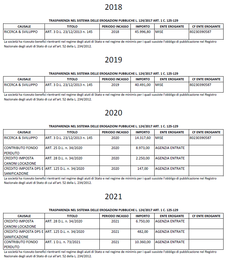 Presentiamo i dati relativi ai benefici pubblici ottenuti negli anni 2018, 2019, 2020 e 2021.