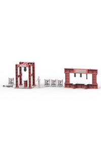 I portali sono normalmente collegati mediante bulloni al basamento, pertanto la loro posizione può essere variata in base alle esigenze di prova. Sono regolabili anche in altezza, potendo spostare la traversa verticalmente e fissarla tramite bulloni ai montanti laterali.