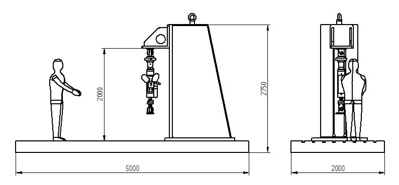 Braccio di reazione ad altezza variabile da 800 a 3500 mm.