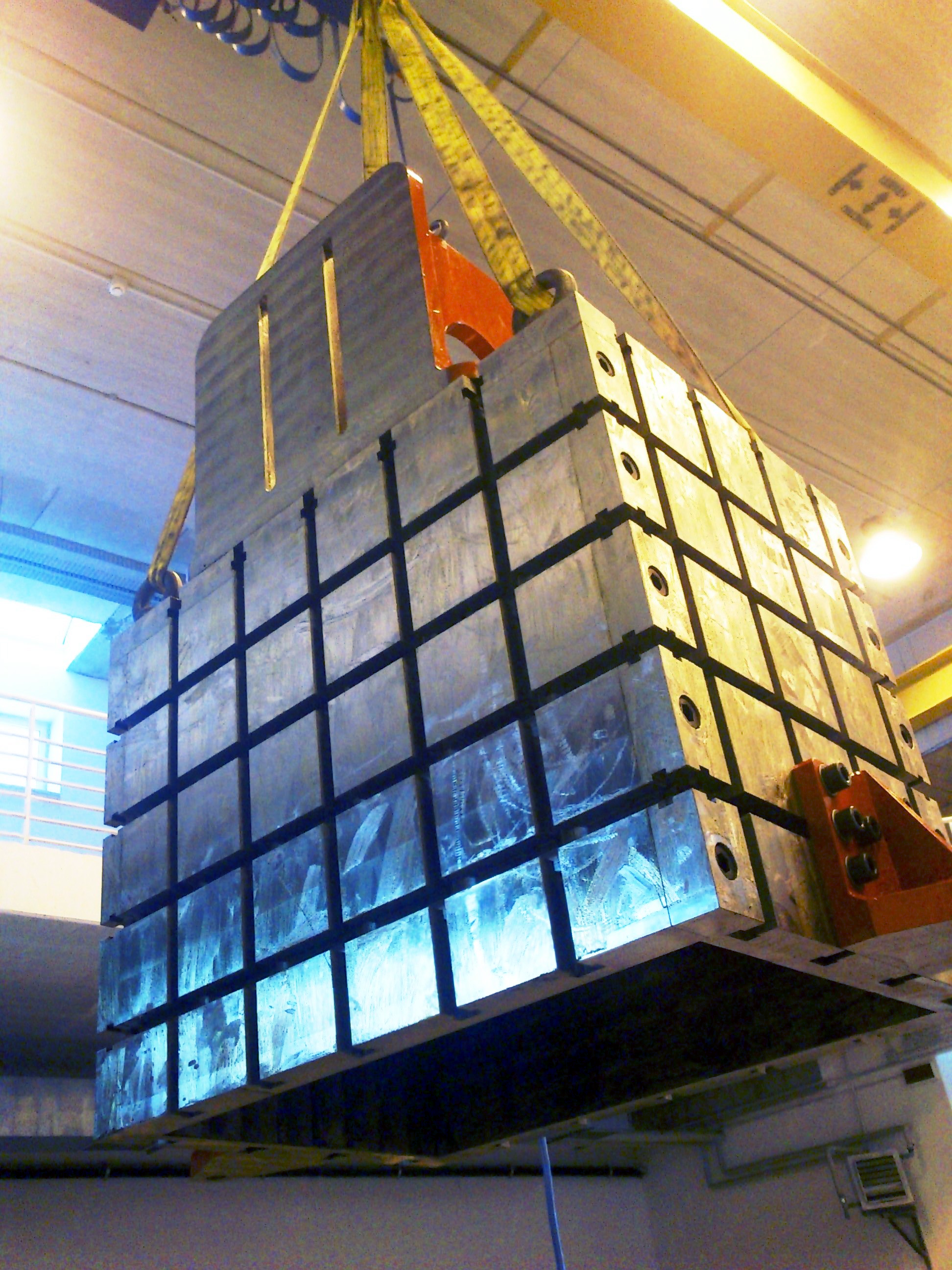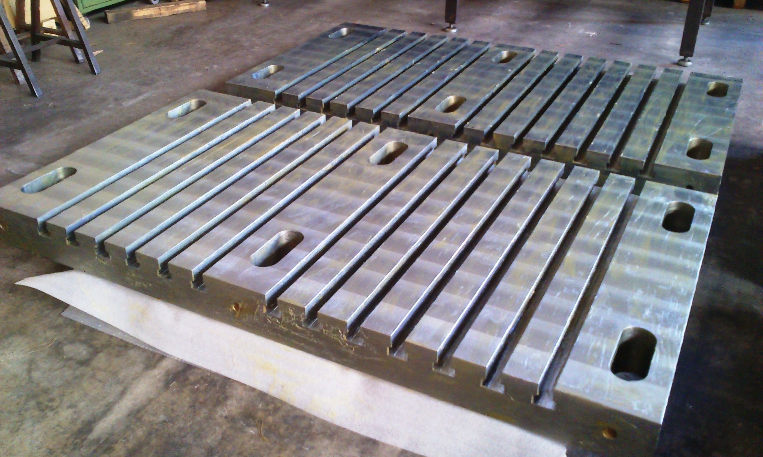 assemblando 5 piani di acciaio, opportunamente spianati di macchina utensile e provvisti di scanalature a T su tutte e 5