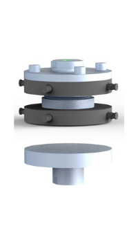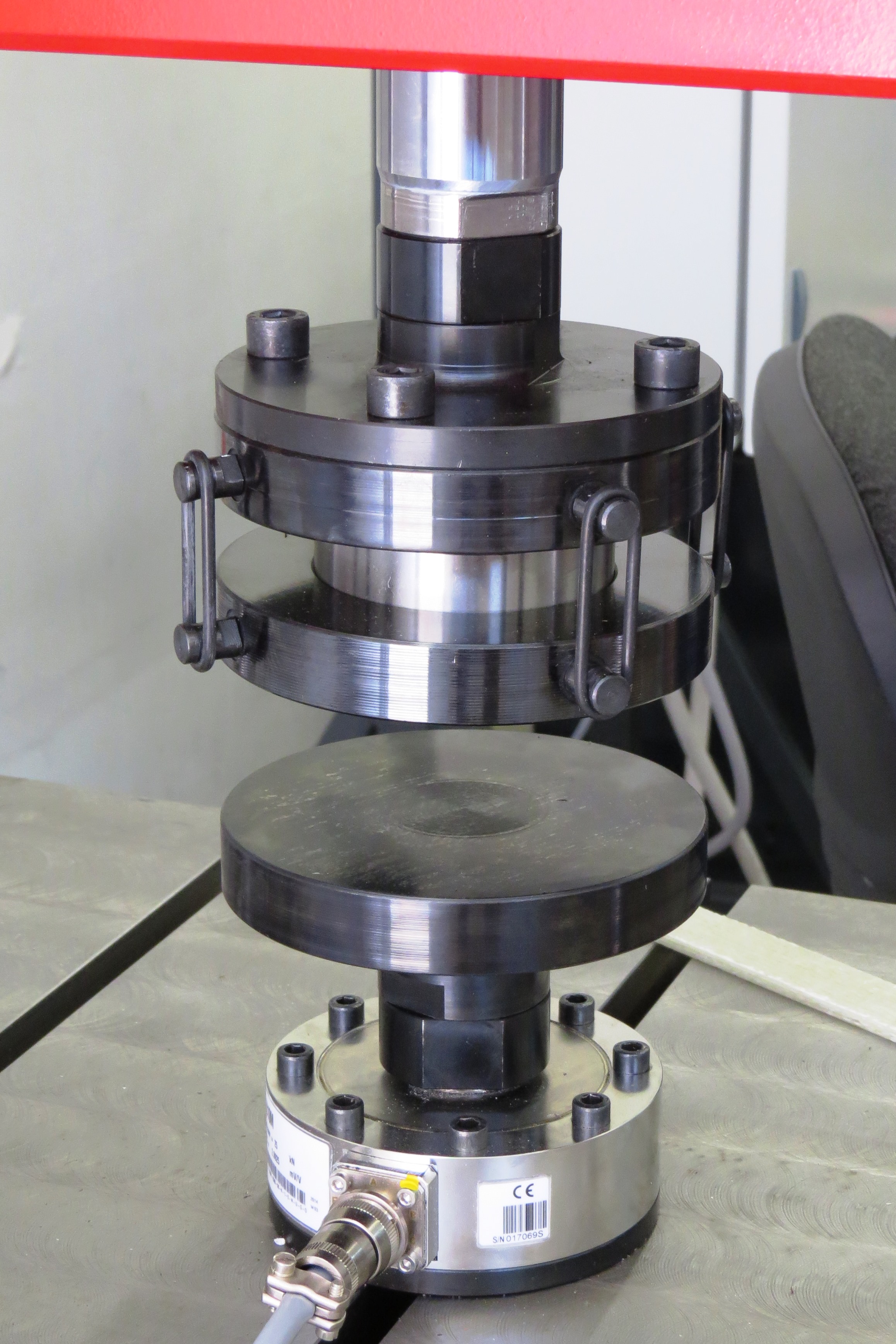 Circular compression plates system made of 39NiCrM3 steel with a ball joint that compensates for small misalignments.
