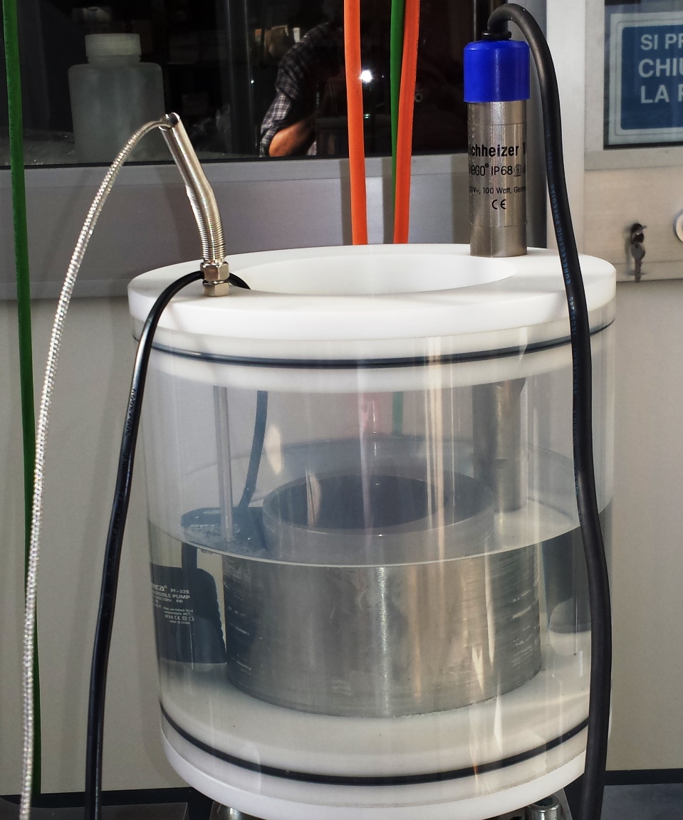 - Liquid container with temperature control in which the whole system will be inserted; it allows to carry out tests in physiological solutions or other liquids, ensuring that the temperatures remains within the range close to the environmental and body temperature.
