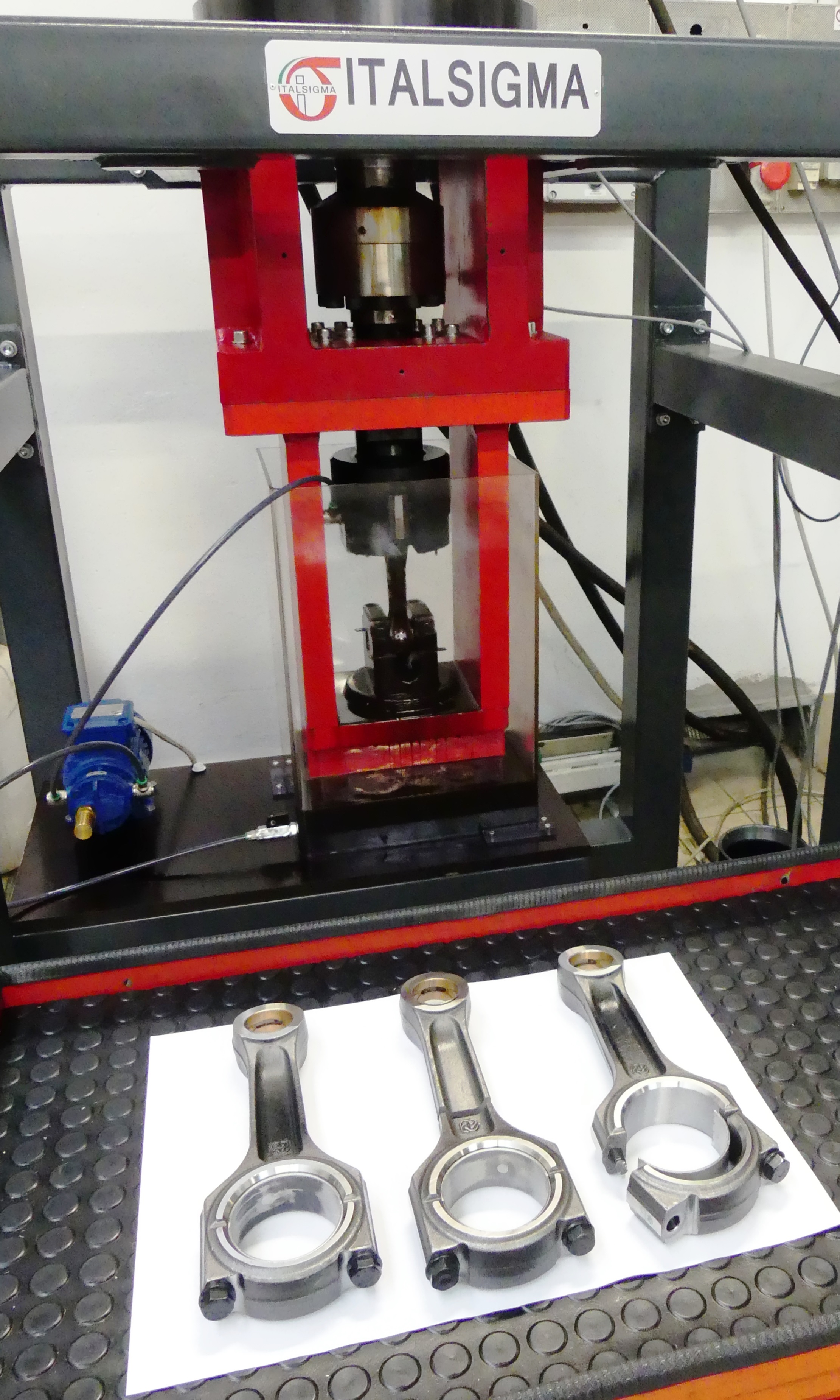 The equipment consists of a force closing frame and two mechanical clamps that reproduce the operating conditions of the connecting rod and ensures the couplings.