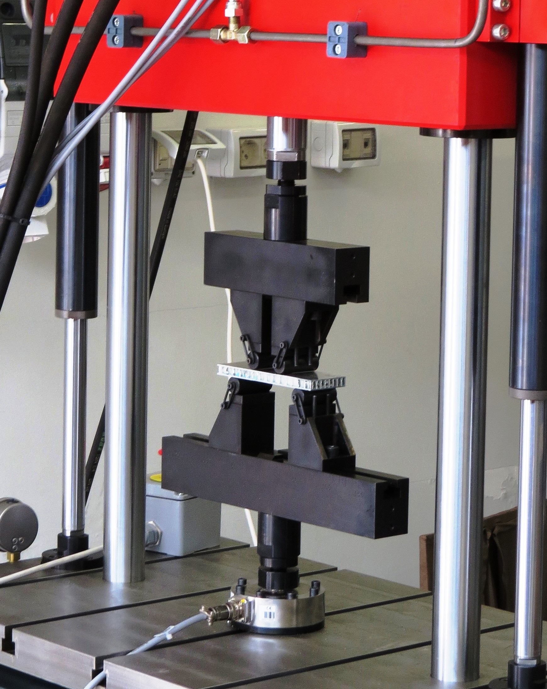 The system allows to perform 3 or 4-point bending tests with adjustable supports and punches.