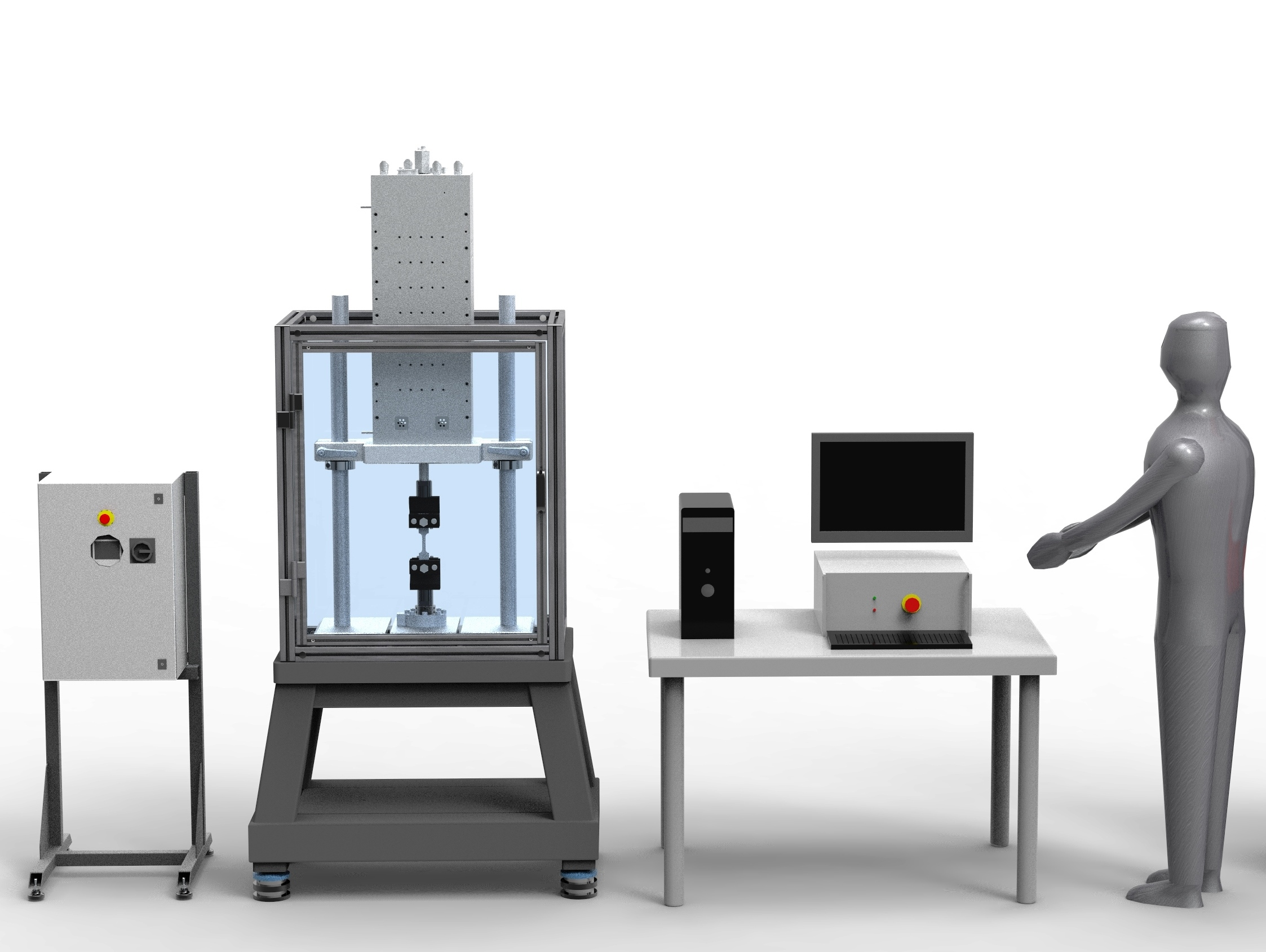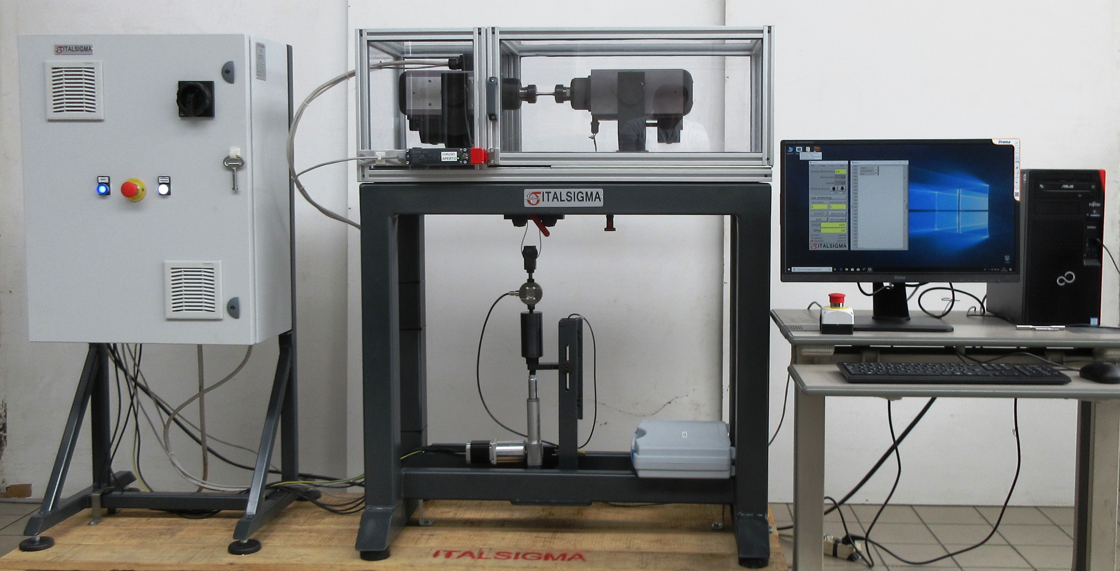 Electromechanical machine with integrated system in a tubular steel base with a polycarbonate protection casing. Command, control and management of the test from Personal Computer