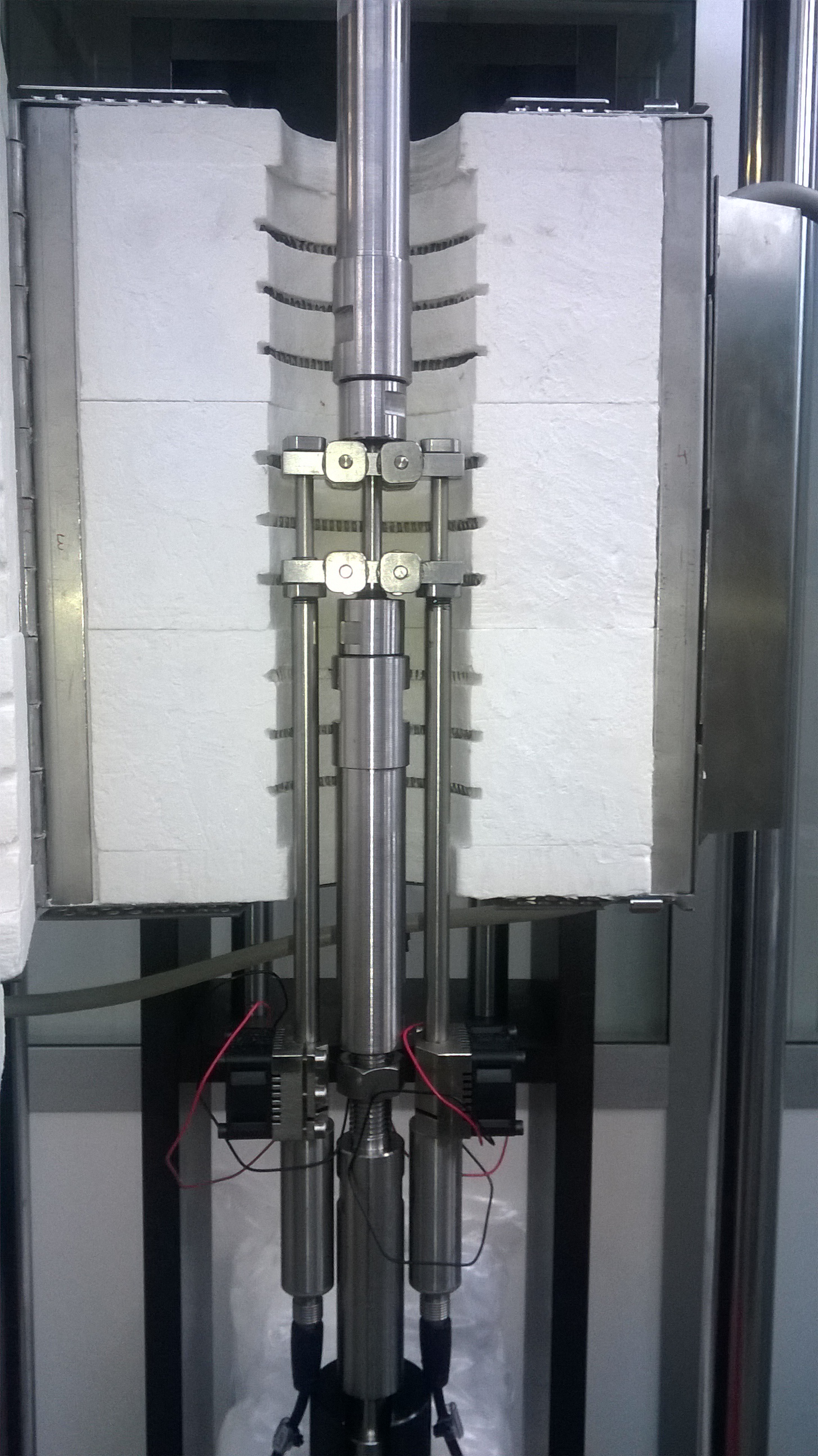 Load capacity in tension up to 50 kN with heating furnace up to Tmax ~ 1200°C.
