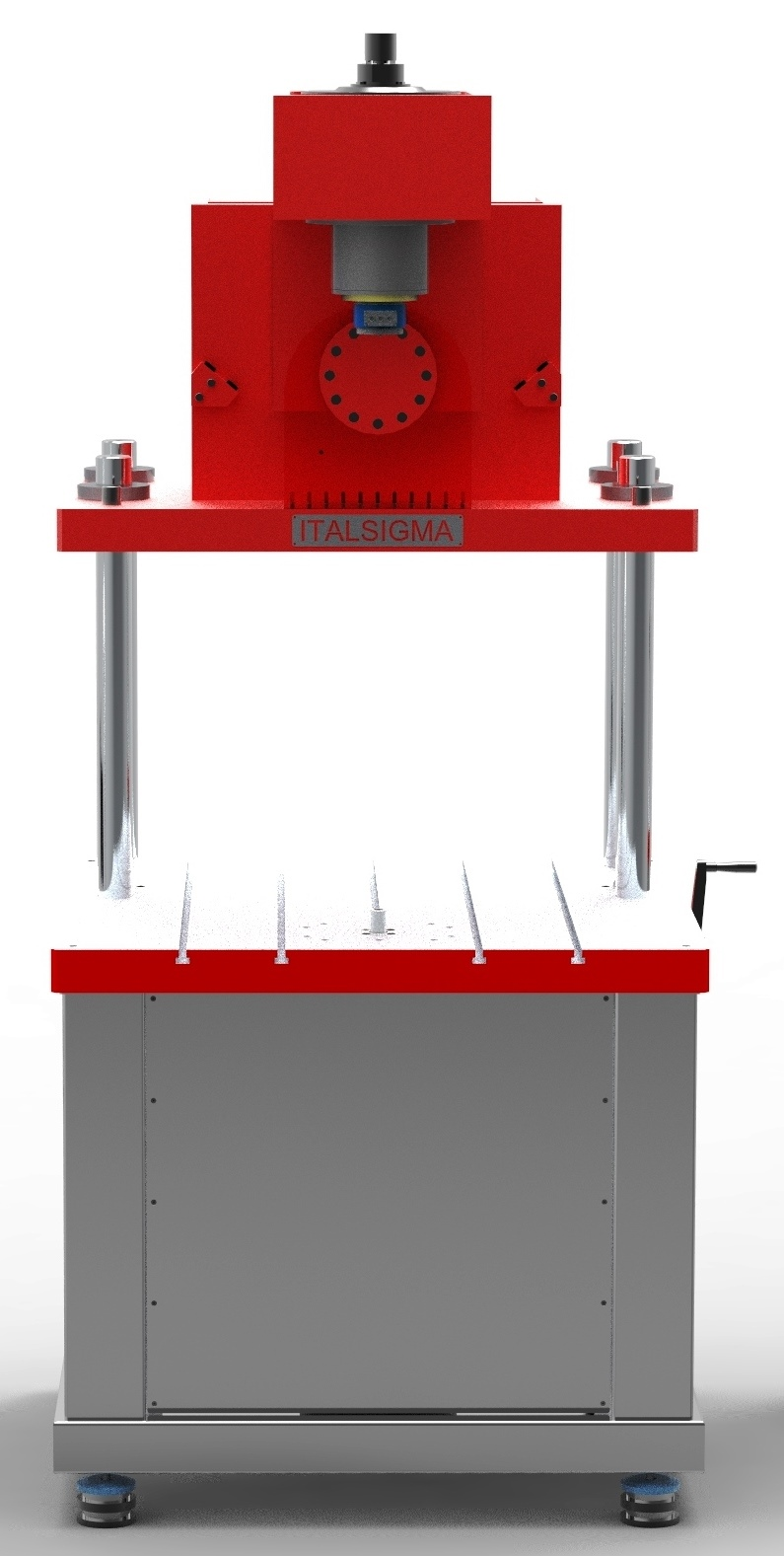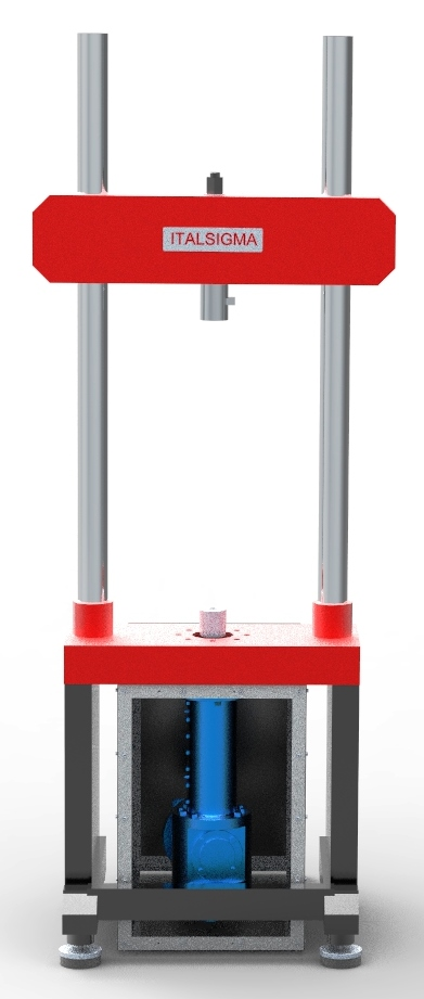 The frame consists of 4 columns and an electric actuator under the lower base; it is possible to anchor the load cell both on the lower base or on the upper crossbeam.