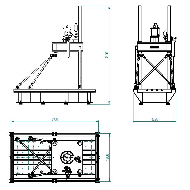 Base surface 2900 mm x 1500 mm. Hydraulic raising of the upper crossbeam.